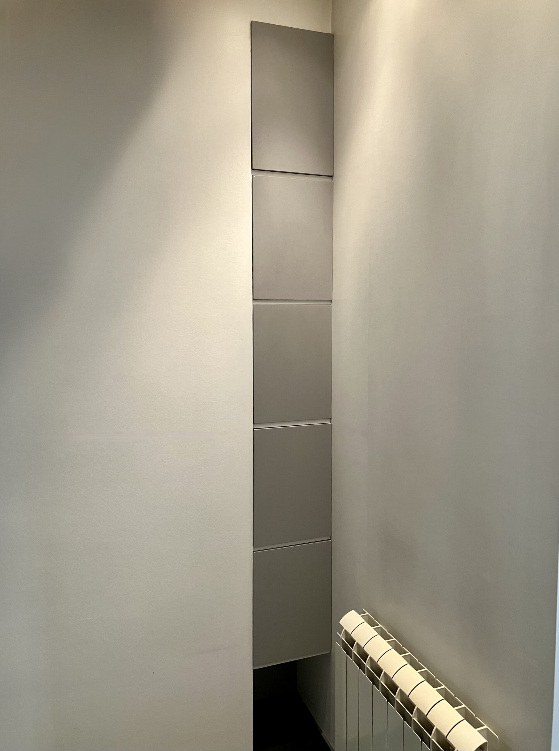 Le renfoncement a été exploité en y créant des rangements fermés complémentaires.