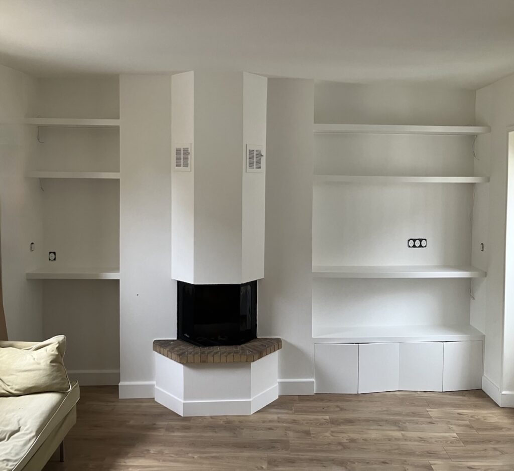 Dans ce projet, le souhait était d’aménager et mettre en valeur les espaces mal exploités situés de part et d’autre de la cheminée.