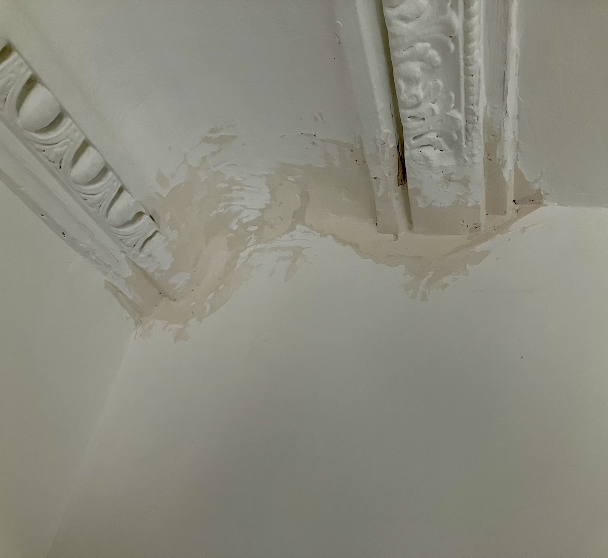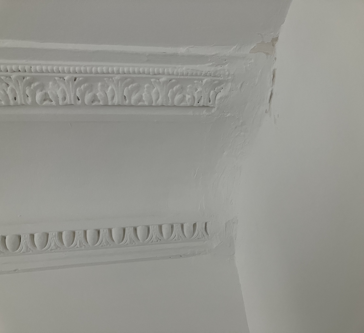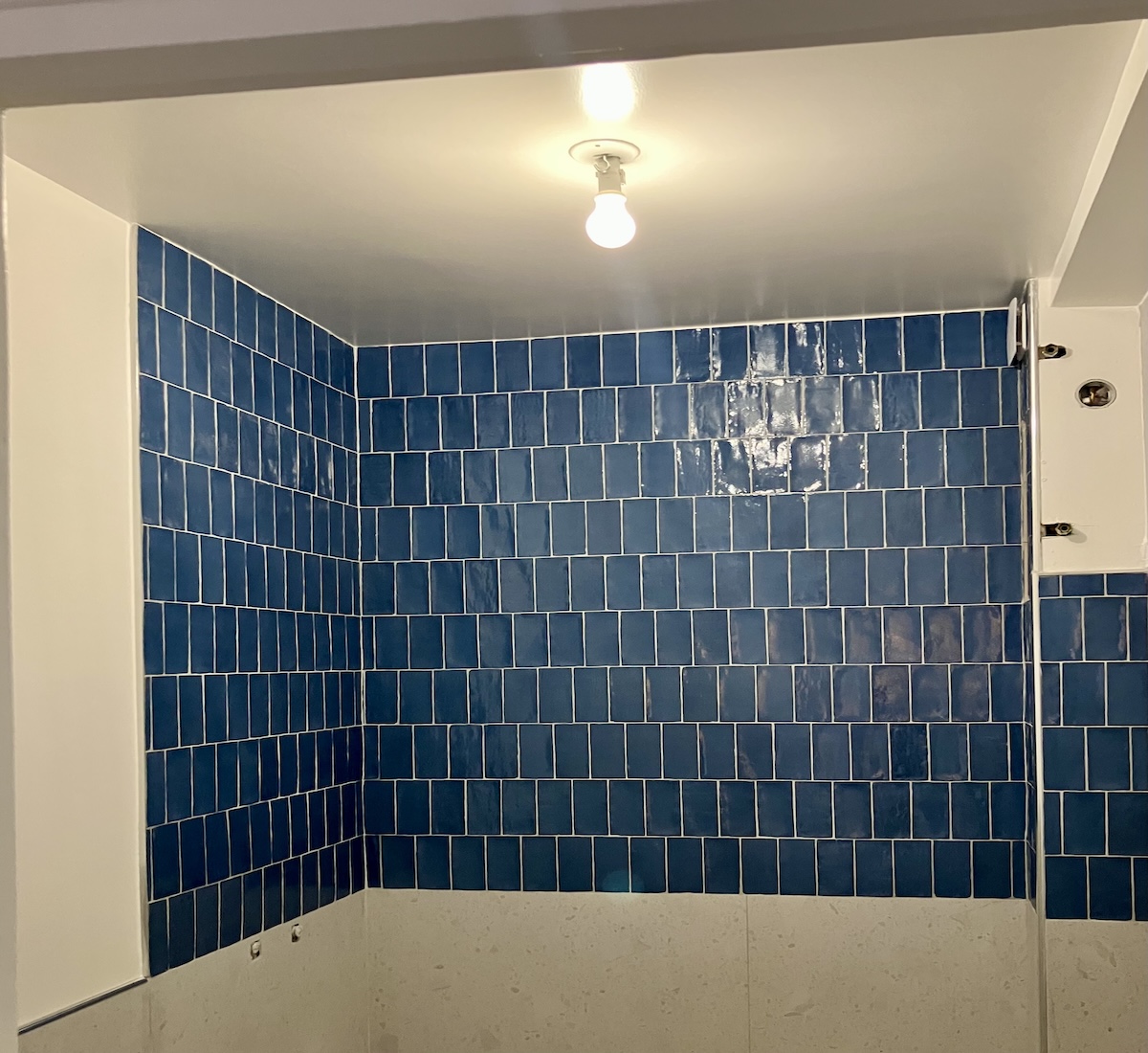 Ratissage total des murs & plafond, application d’une impression solvanté puis mise en peinture de l’ensemble avec 2 couches de finition de laque glycéro.
