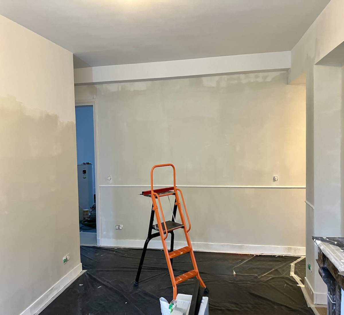 Reprises partielles et totales de défauts présents sur l’ensemble des supports et boiseries de l’appartement.