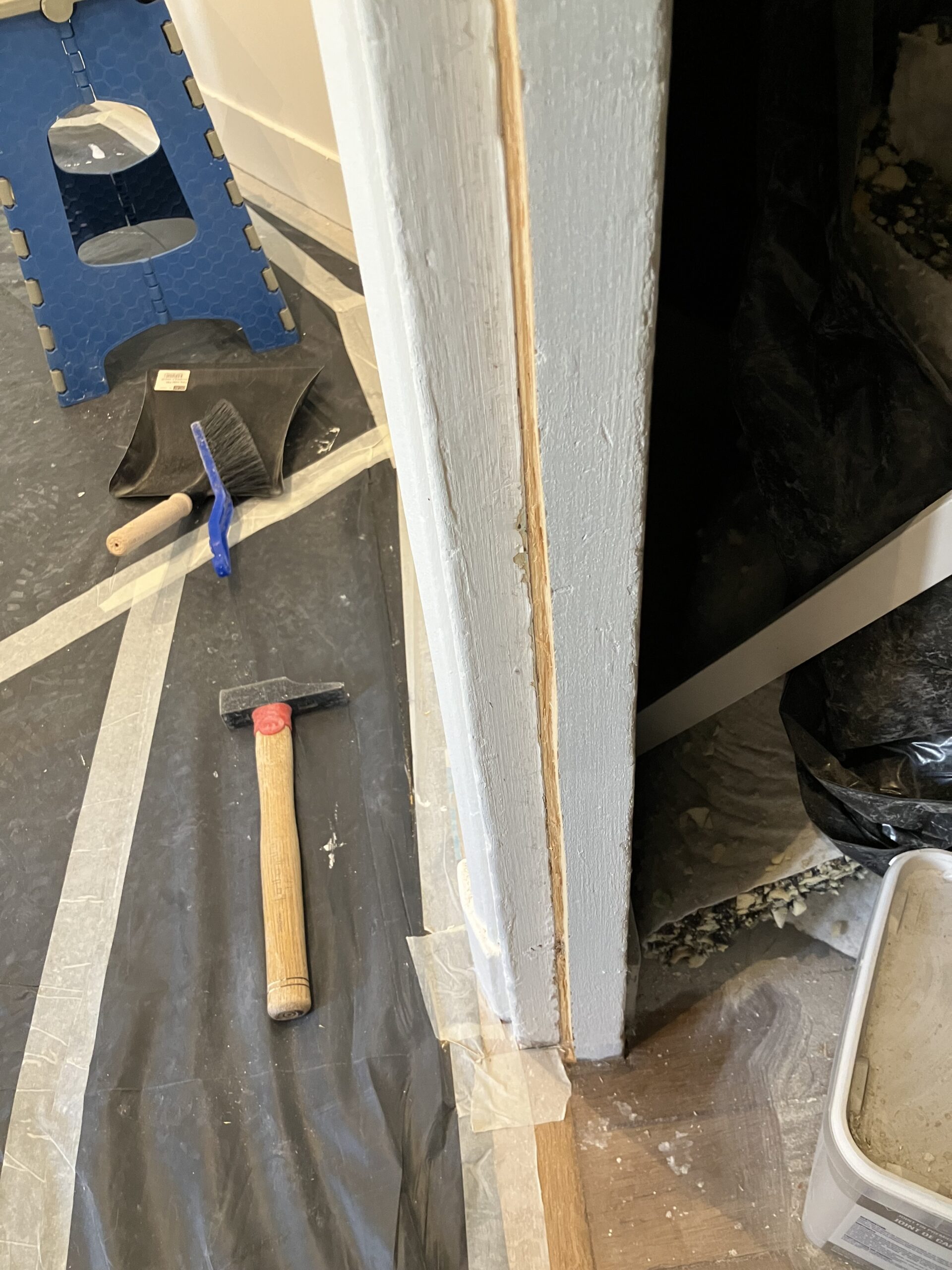 Travaux de préparations et de remise en jeu importants sur l’ensemble des portes qui ne fermaient plus et des plinthes et boiseries très abimées.