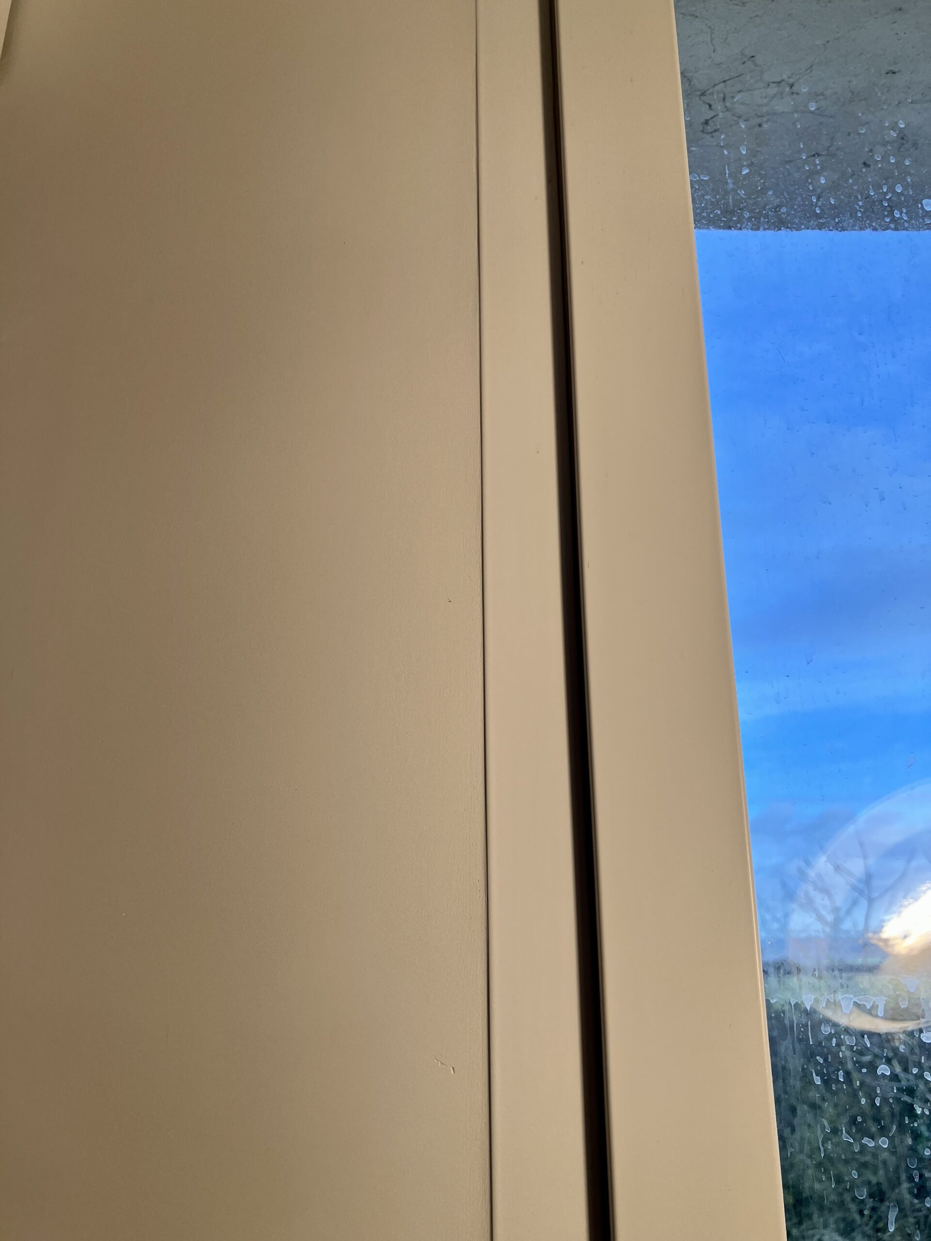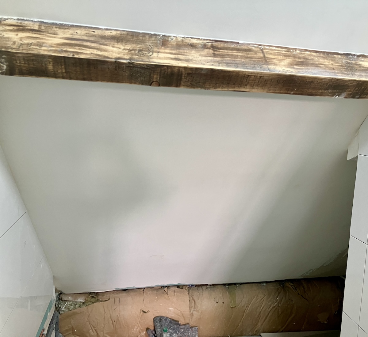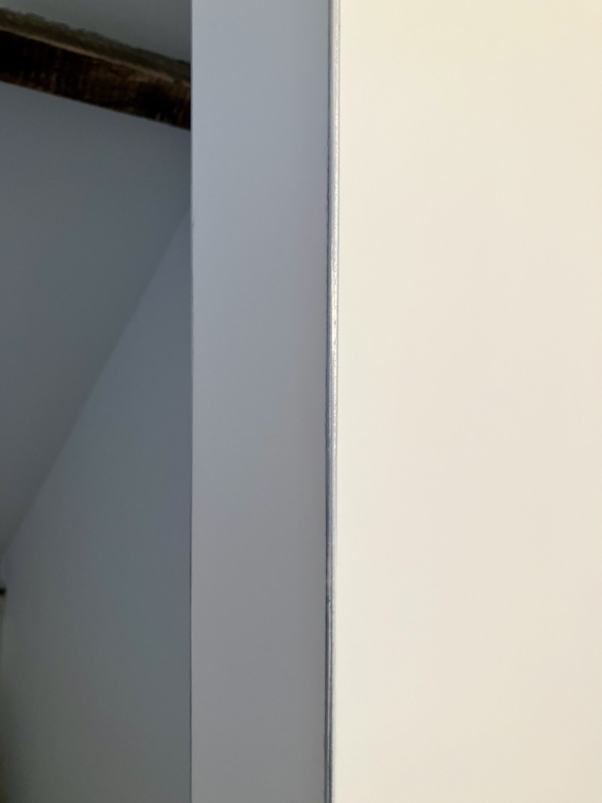 Pose de bandes armées sur l’ensemble des fissures, mise en place de cornières d’angle métallique, ratissage total des murs et du plafond puis ponçage / dépoussiérage avant finition.