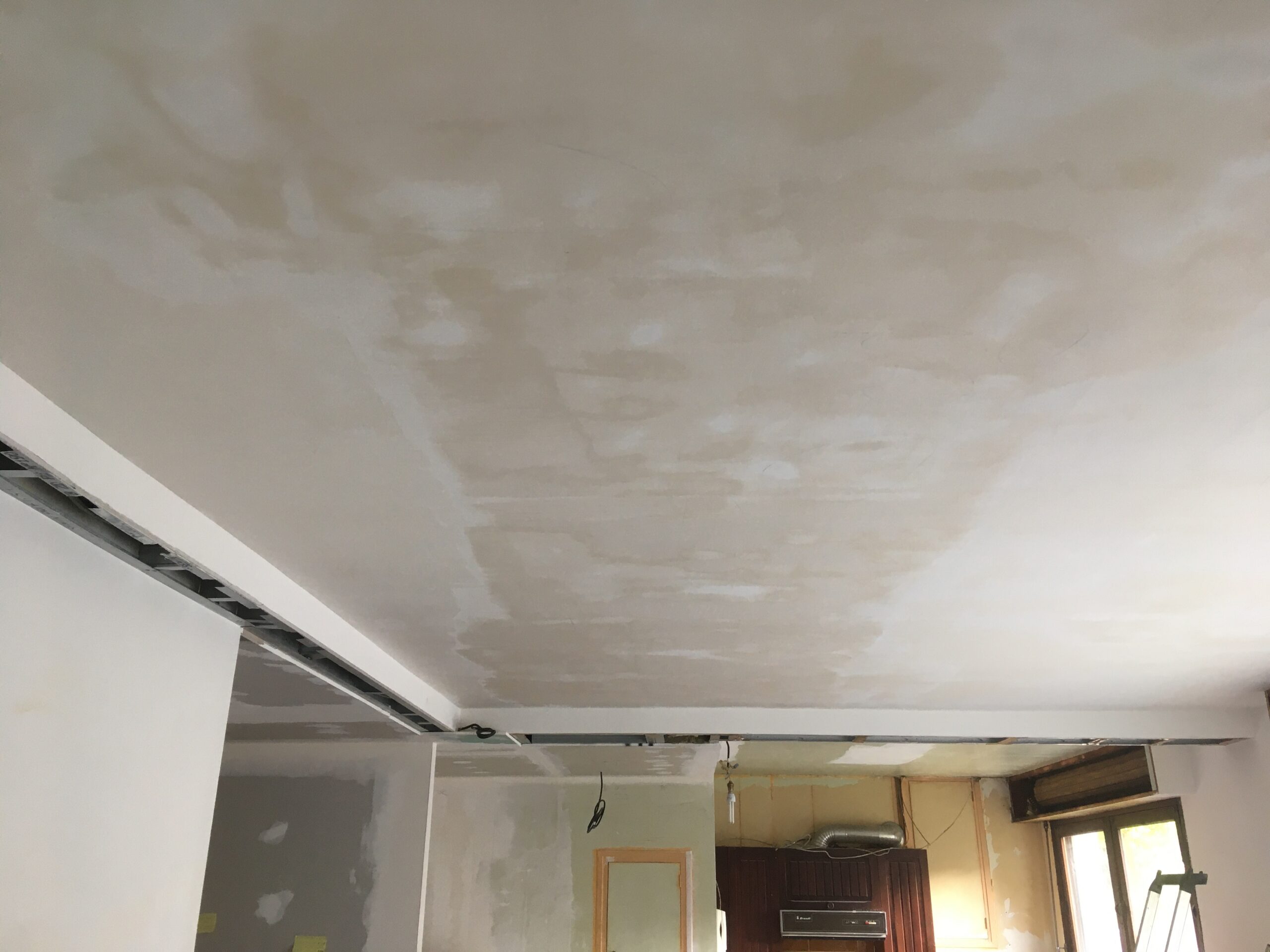 Préparation de l’ensemble des supports et boiseries, ratissages total des murs et plafonds avant la mise en peinture de l’ensemble.